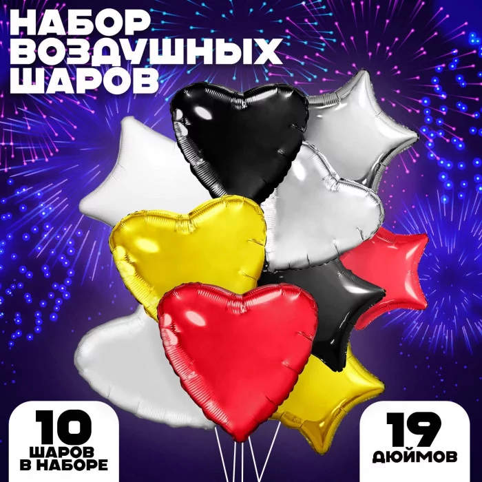 Набор фольгированных шаров 19" "Сердца и звезды", 10 шт. 9921879