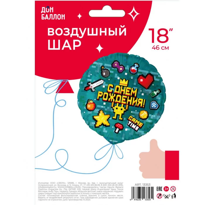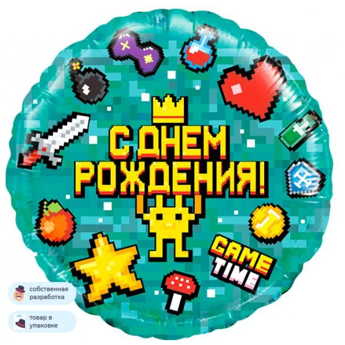 Шар (18\'\'/46 см) Круг, Game Time, Пиксели, 1 шт. в уп. 13353