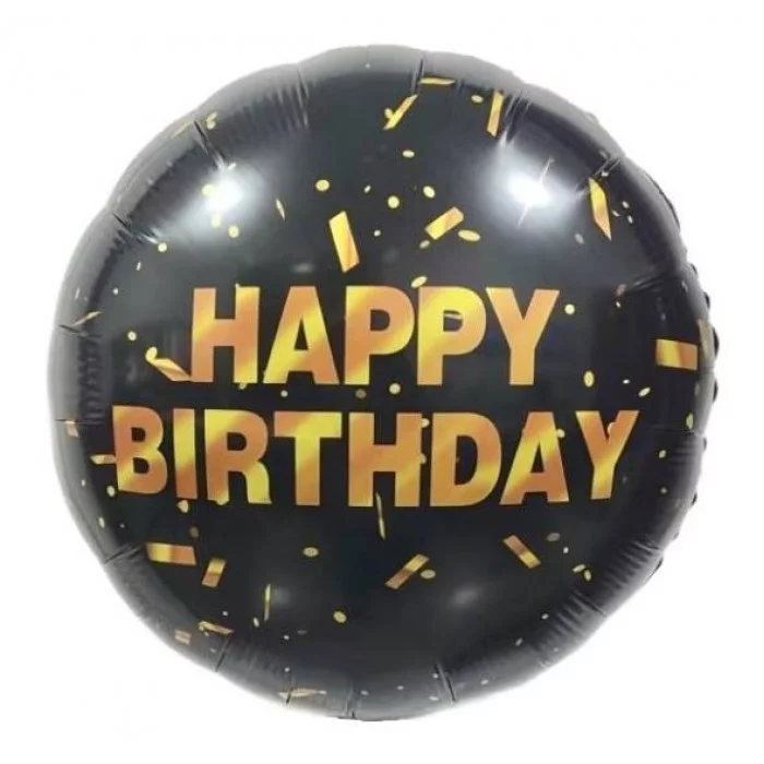 Шар (18\'\'/46 см) Круг, Happy Birthday (золотое конфетти), Черный, 1 шт. 21921