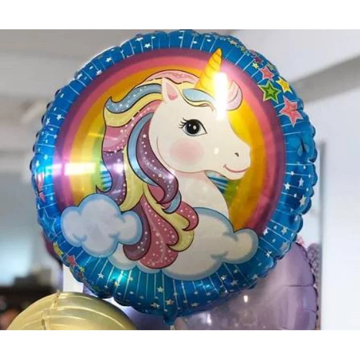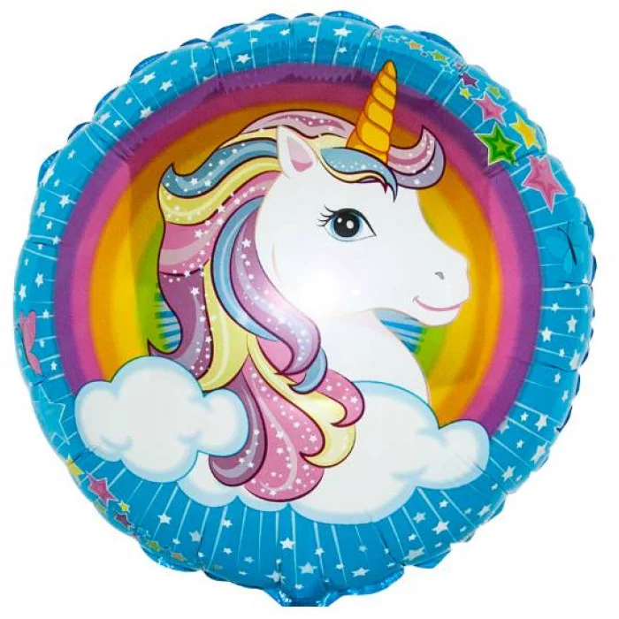 Шар (18\'\'/46 см) Круг, Нежный единорог в облаках, Голубой, 1 шт. 401586