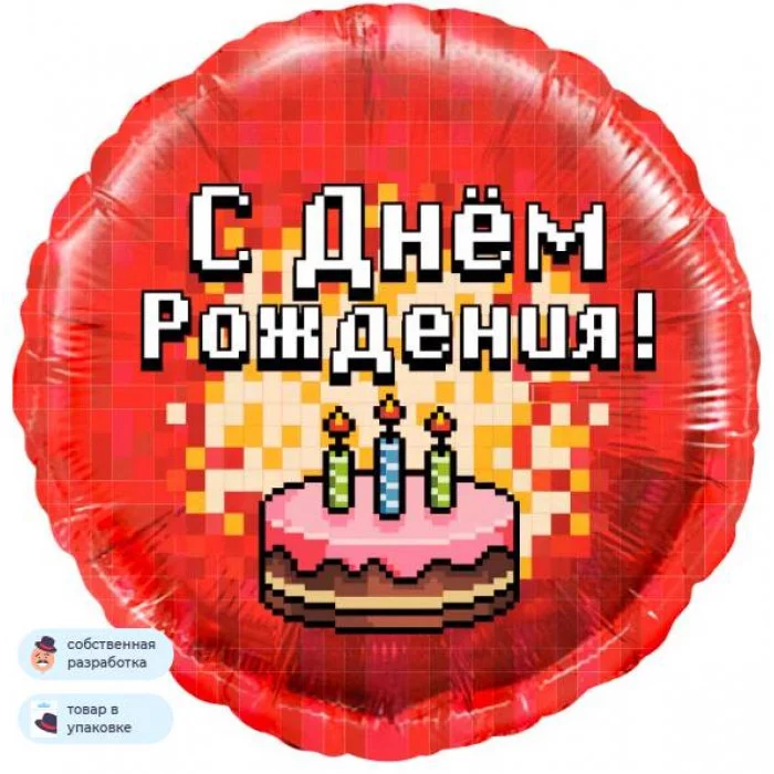 Шар (18\'\'/46 см) Круг, Пиксели, С Днем Рождения! (торт), Красный, 1 шт. в уп. 13355