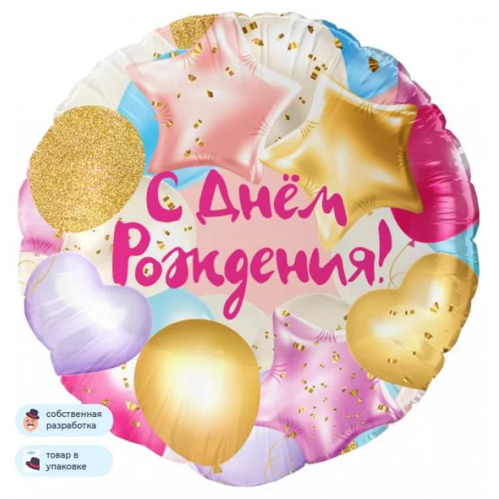 Шар (18\'\'/46 см) Круг, С Днем Рождения, 1 шт. 13494