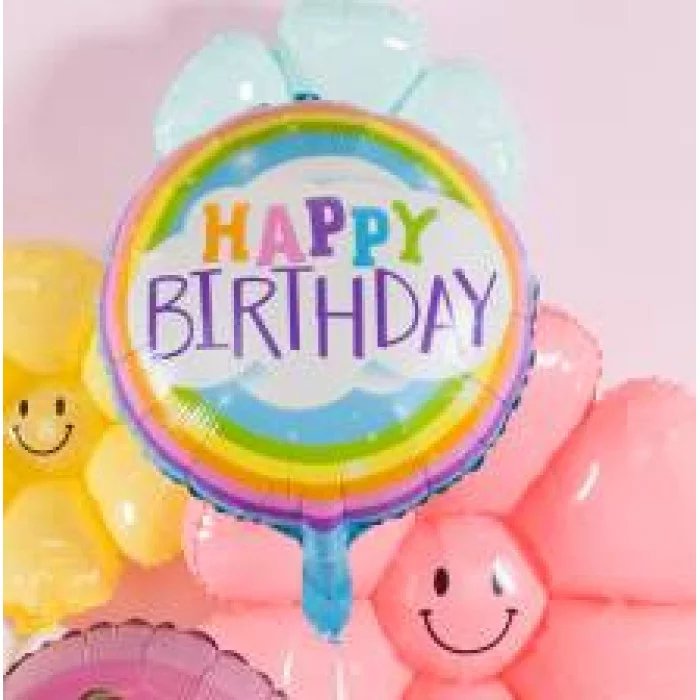 Шар (18\'\'/46 см) Круг, С Днем Рождения (облачко и радуга), 1 шт. 21925