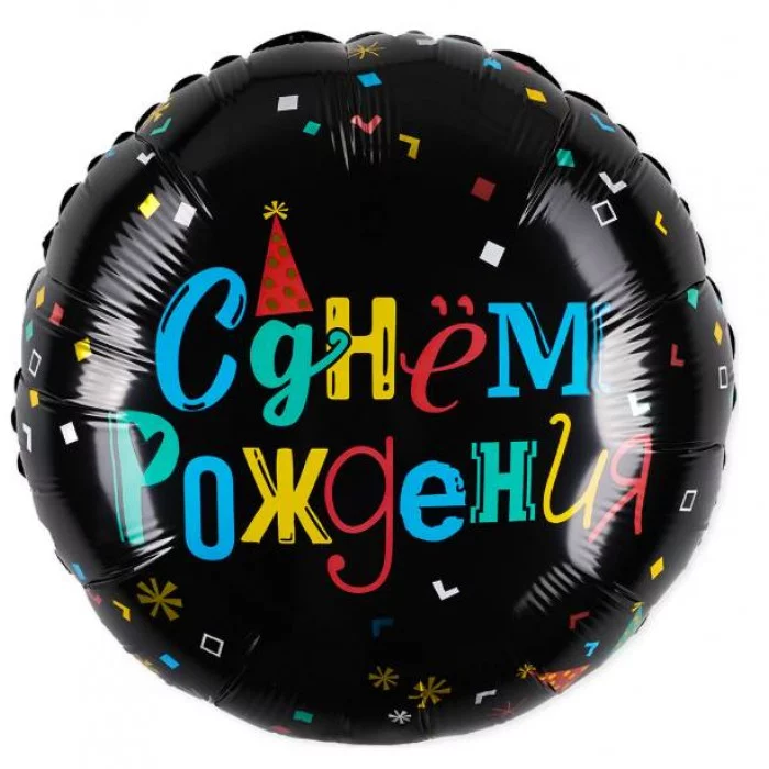 Шар (18\'\'/46 см) Круг, С Днем Рождения (яркие буквы), Черный, 1 шт. 226726