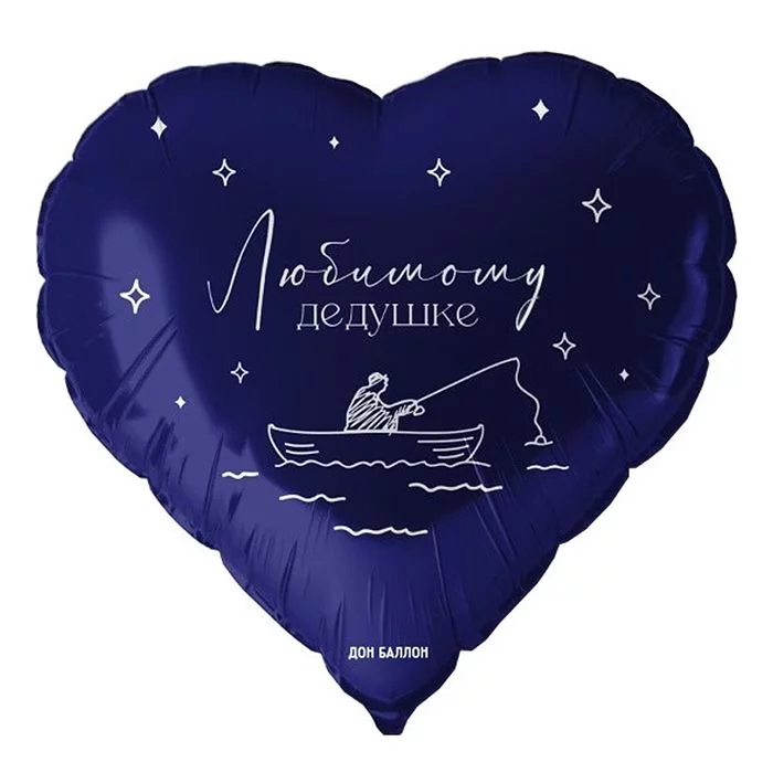 Шар (18\'\'/46 см) Сердце, Любимому дедушке, Темно-синий, 1 шт. в уп. 13424