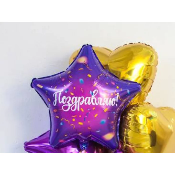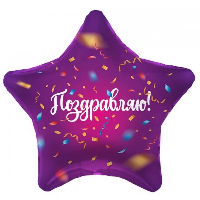 Шар (19\'\'/48 см) Звезда, Поздравляю! (яркий серпантин), Фиолетовый, 1 шт. 757598