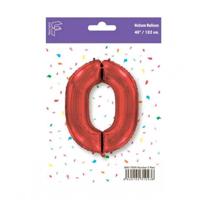 Шар (40\'\'/102 см) Цифра, 0, Красный, 1 шт. в уп. B901760R
