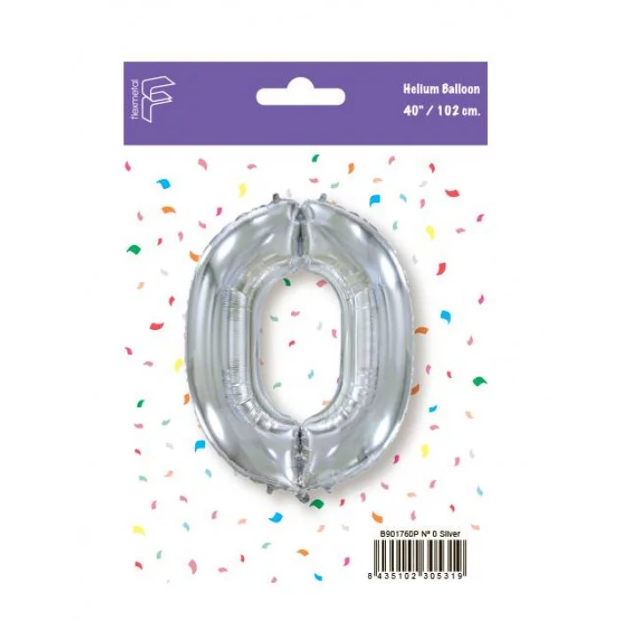 Шар (40\'\'/102 см) Цифра, 0, Серебро, 1 шт. в уп. B901760P