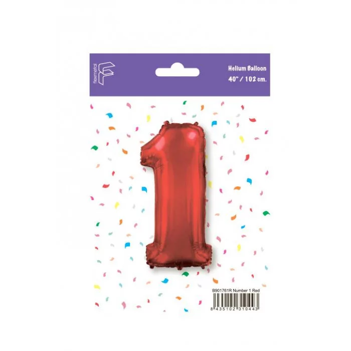 Шар (40\'\'/102 см) Цифра, 1, Красный, 1 шт. в уп. B901761R