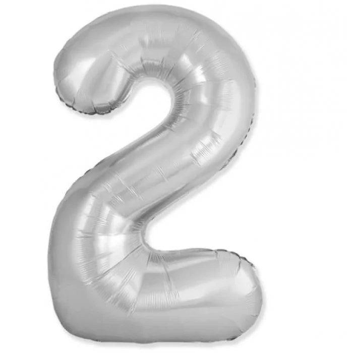Шар (40\'\'/102 см) Цифра, 2 Slim, Серебро, 1 шт. 901912P