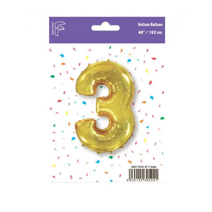 Шар (40\'\'/102 см) Цифра, 3, Золото, 1 шт. в уп. B901763O