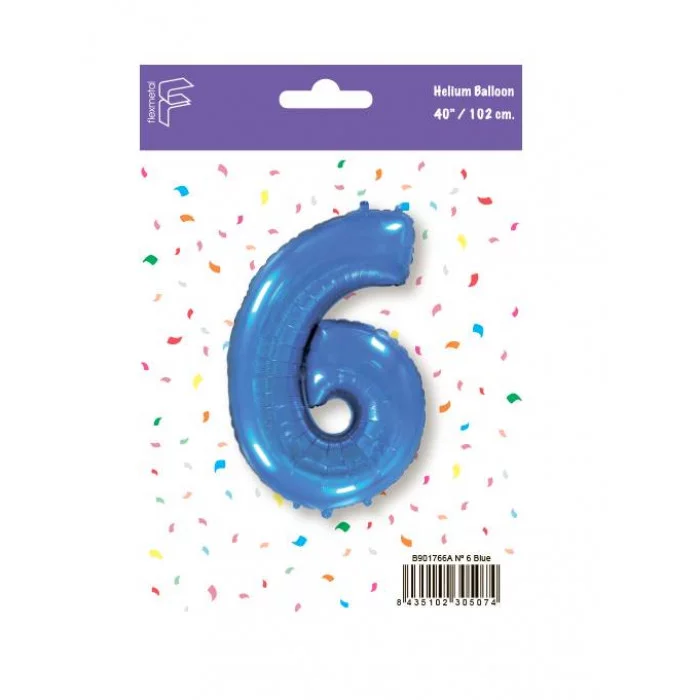 Шар (40\'\'/102 см) Цифра, 6, Синий, 1 шт. в уп. B901766A