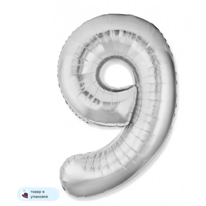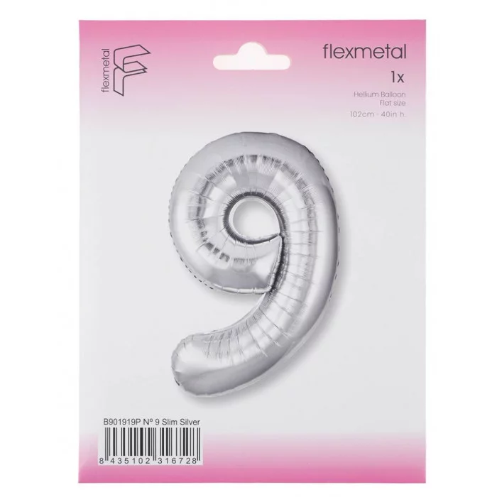 Шар (40\'\'/102 см) Цифра, 9 Slim, Серебро, 1 шт. в уп. B901919P
