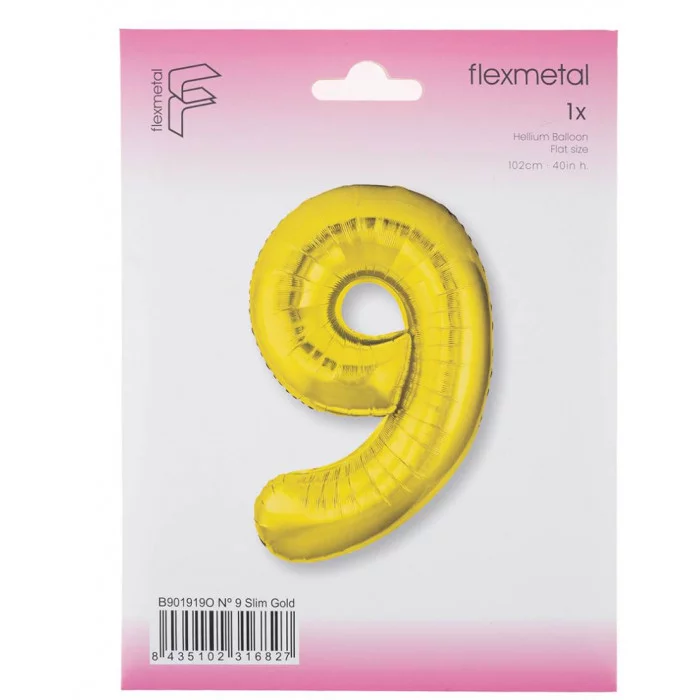Шар (40\'\'/102 см) Цифра, 9 Slim, Золото, 1 шт. в уп. B901919O