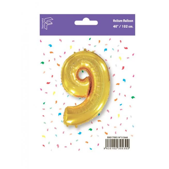 Шар (40\'\'/102 см) Цифра, 9, Золото, 1 шт. в уп. B901769O