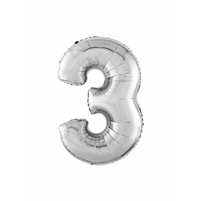 Шар Agura цифра 3 серебро (40\'/102см, 1 шт) 753798