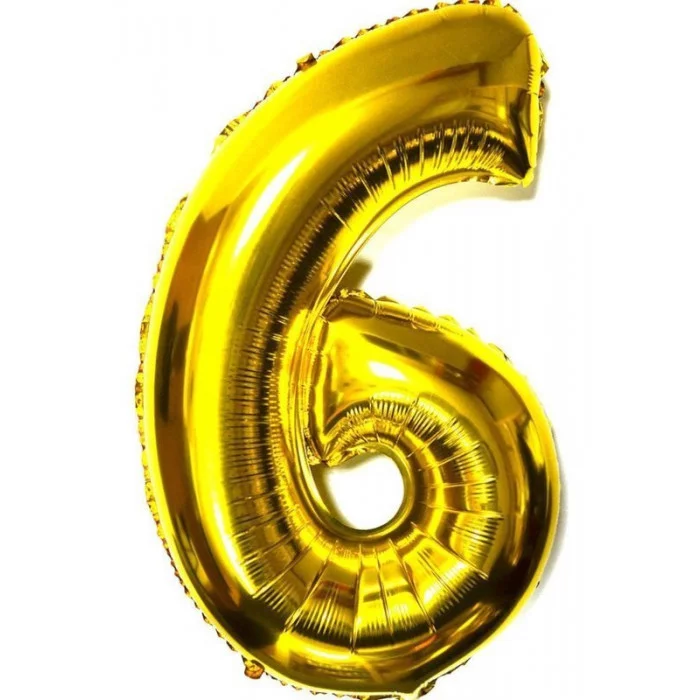 Шар фольга Цифры золото/серебро "6" 100 см. РМ-00013666