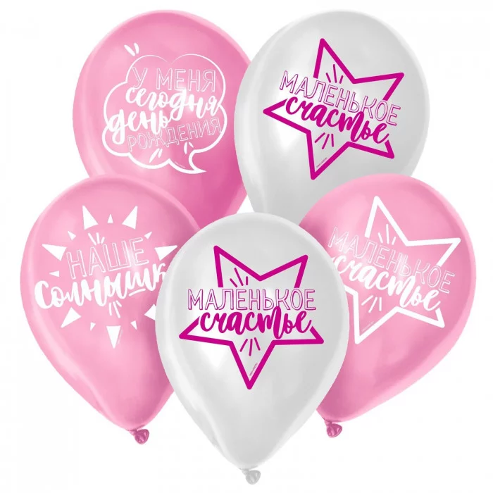 Шар латексный 12" «День рождения девочки. Для селфи», 5 шт. 3722880