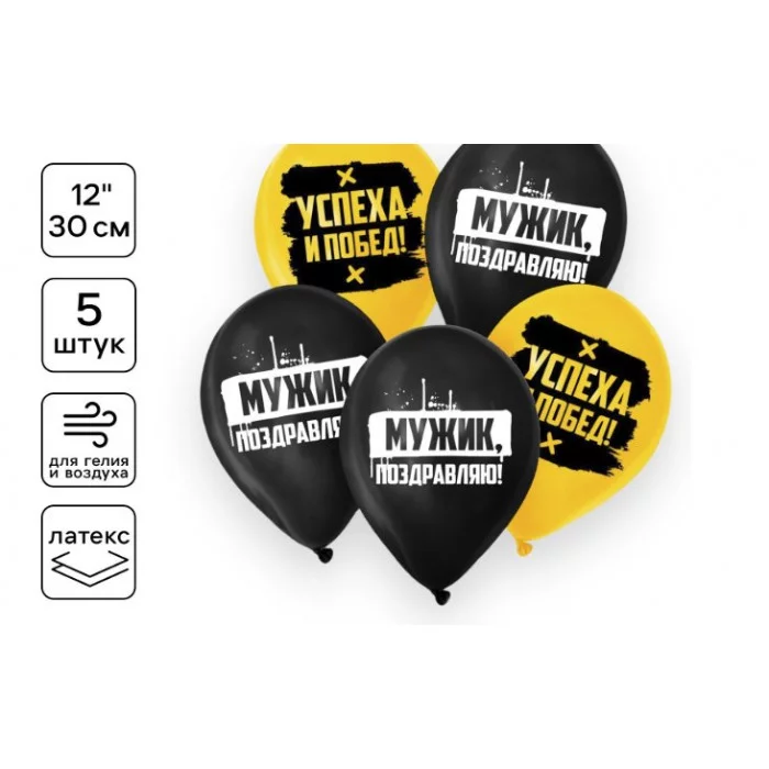 Шар латексный 12" «Поздравляю, мужик», 5 шт. 9613214