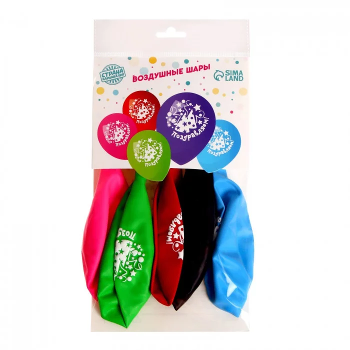 Шар латексный 12" "Поздравляем+С ДР", колпаки набор 5 шт. 3893739