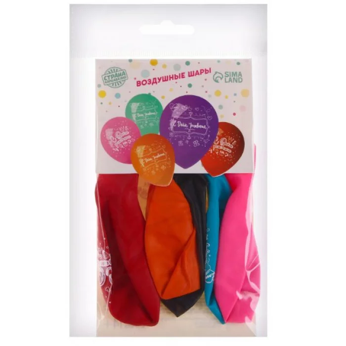 Шар латексный 12" "С Днём Рождения," 5шт. 9292689
