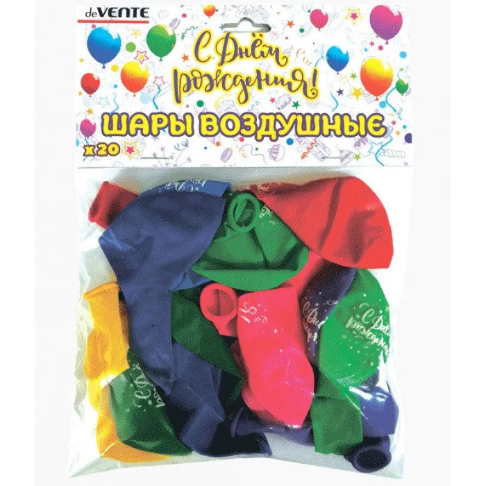 Шар воздушный 25см 20шт/пакет "С днем рождения" DEVENTE 9061705 632957