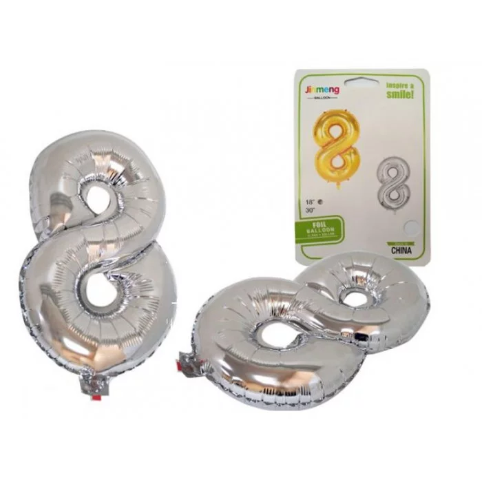 Шар воздушный фольга 45см ПВХ "Цифра 8" серебряный е/п JOSEF OTTEN 2634-8 412985