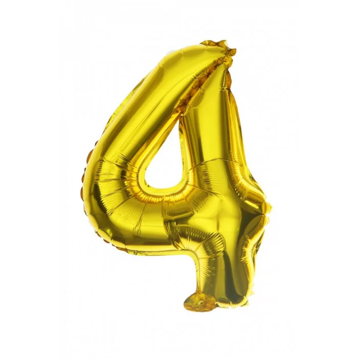 Шары фольга Цифры золото/серебро "4" 100 см.
