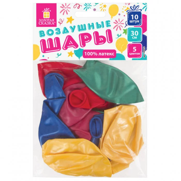 Шары воздушные ЗОЛОТАЯ СКАЗКА, 12" (30 см), КОМПЛЕКТ 10 штук, металлик, ассорти 5 цветов, пакет, 105012