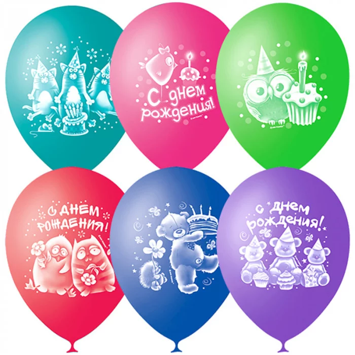 Воздушные шары 12" 25см С Днем Рождения ассорти