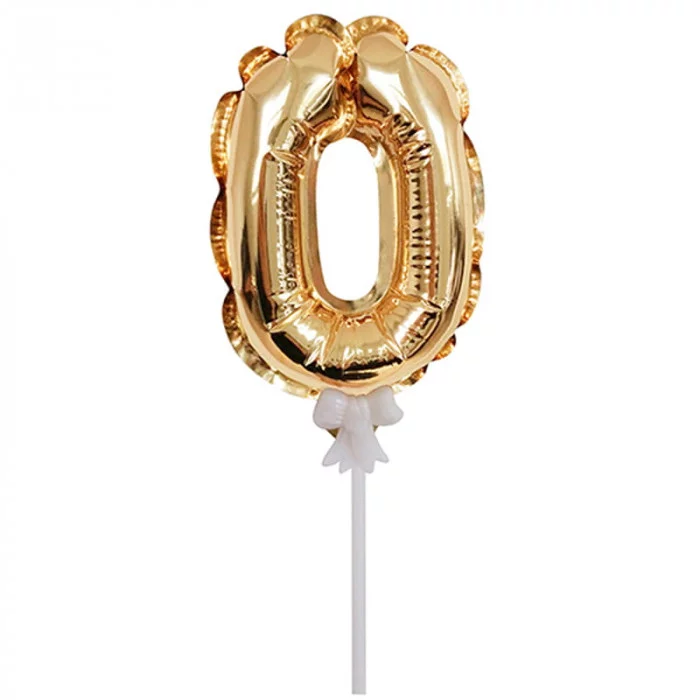 Воздушный шар, самодув, 18см Поиск "Цифра 0", фольгированный, золотой 298190