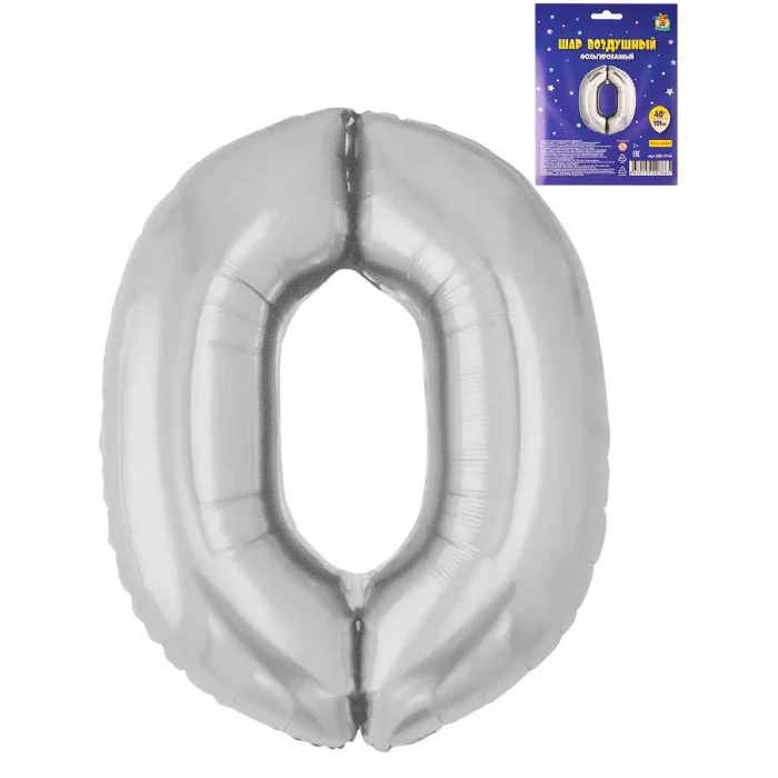 Воздушный шар Цифра "0", серебристый, фольга, 40\'/101 см ШВ-0766