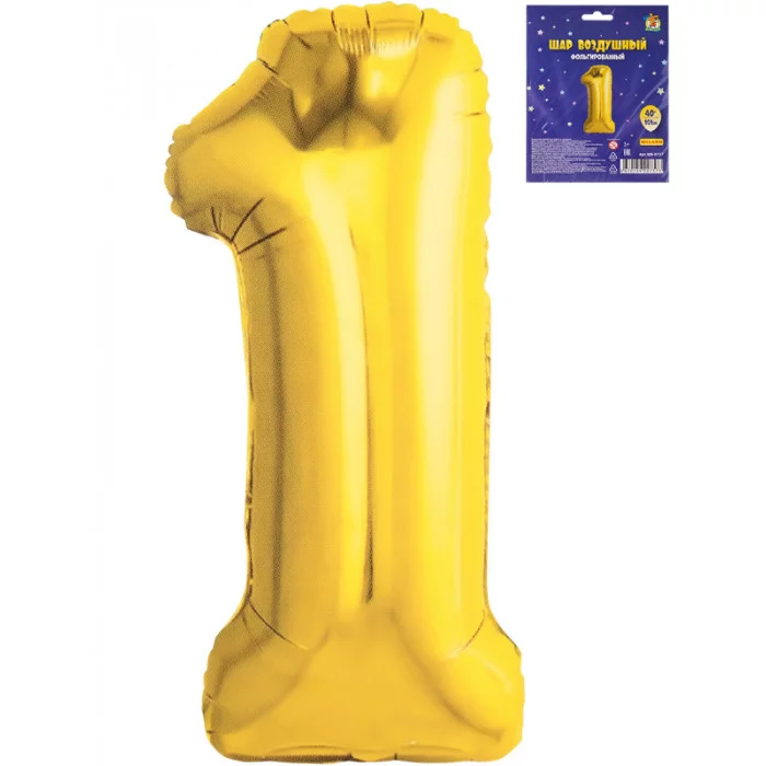 Воздушный шар Цифра "1", золотистый, фольга, 40\'/101 см ШВ-0757