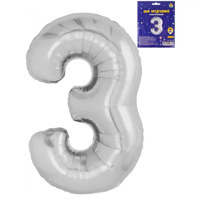 Воздушный шар Цифра "3", серебристый, фольга, 40\'/101 см ШВ-0769