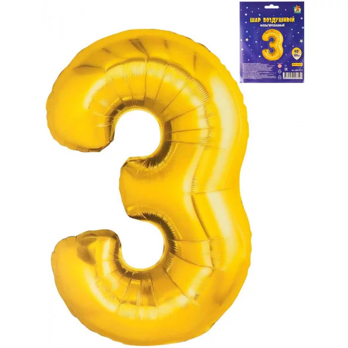 Воздушный шар Цифра "3", золотистый, фольга, 40\'/101 см ШВ-0759