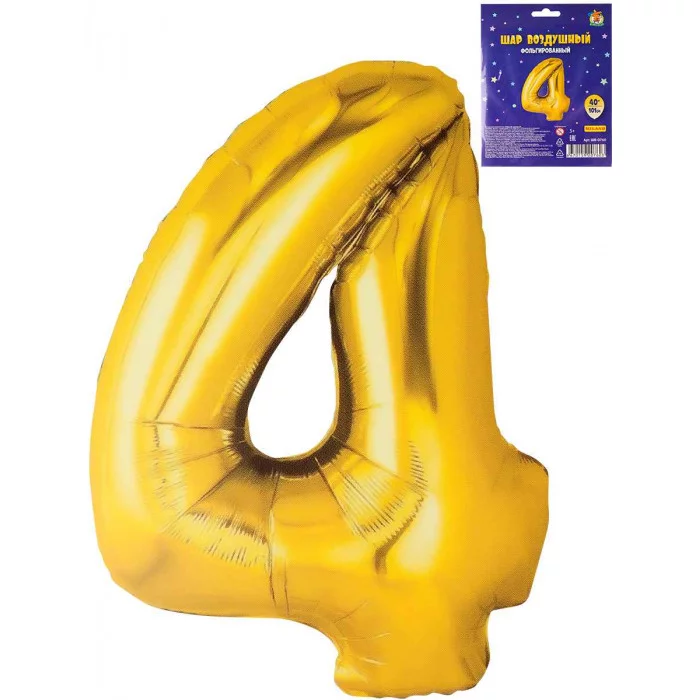 Воздушный шар Цифра "4", золотистый, фольга, 40\'/101 см ШВ-0760