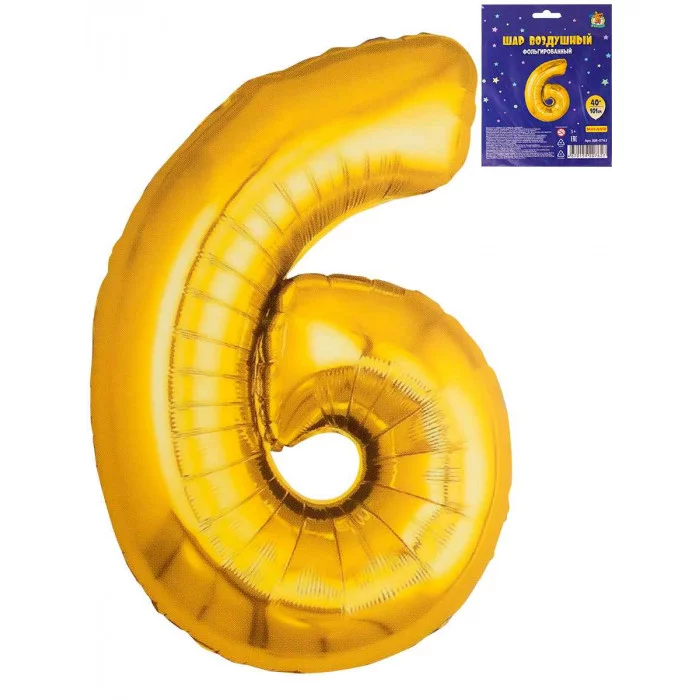 Воздушный шар Цифра "6", золотистый, фольга, 40\'/101 см ШВ-0762