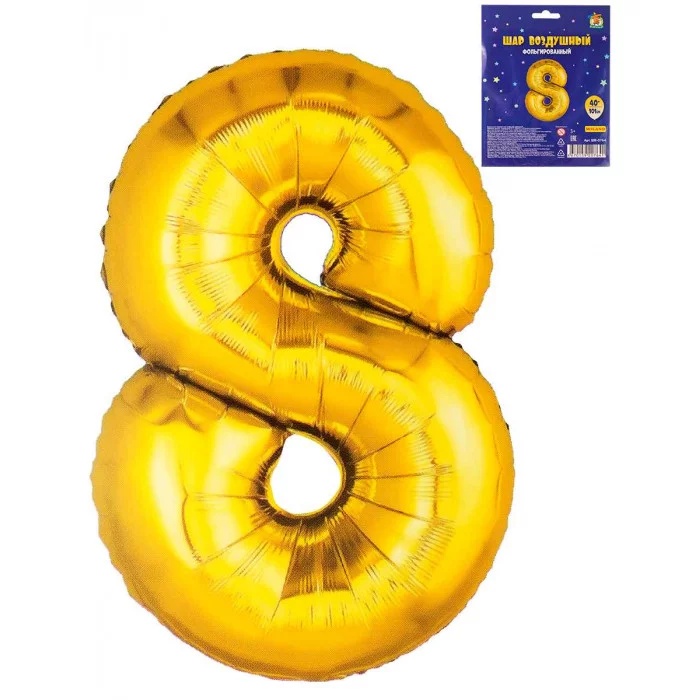 Воздушный шар Цифра "8", золотистый, фольга, 40\'/101 см ШВ-0764