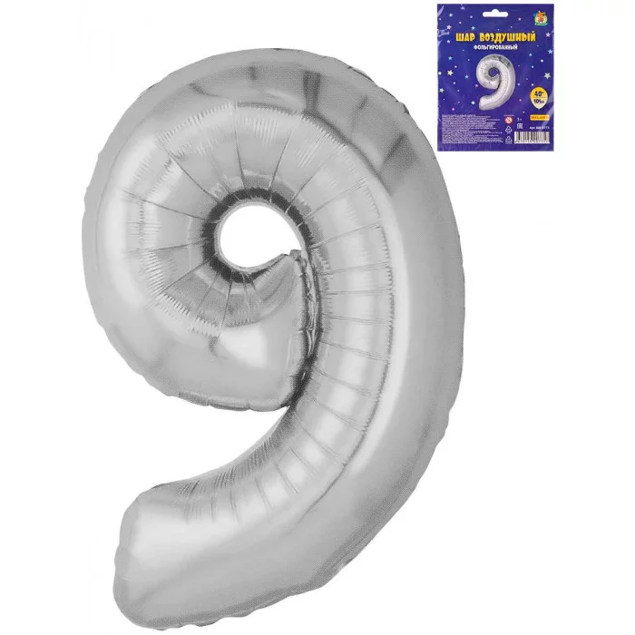 Воздушный шар Цифра "9", серебристый, фольга, 40\'/101 см ШВ-0775
