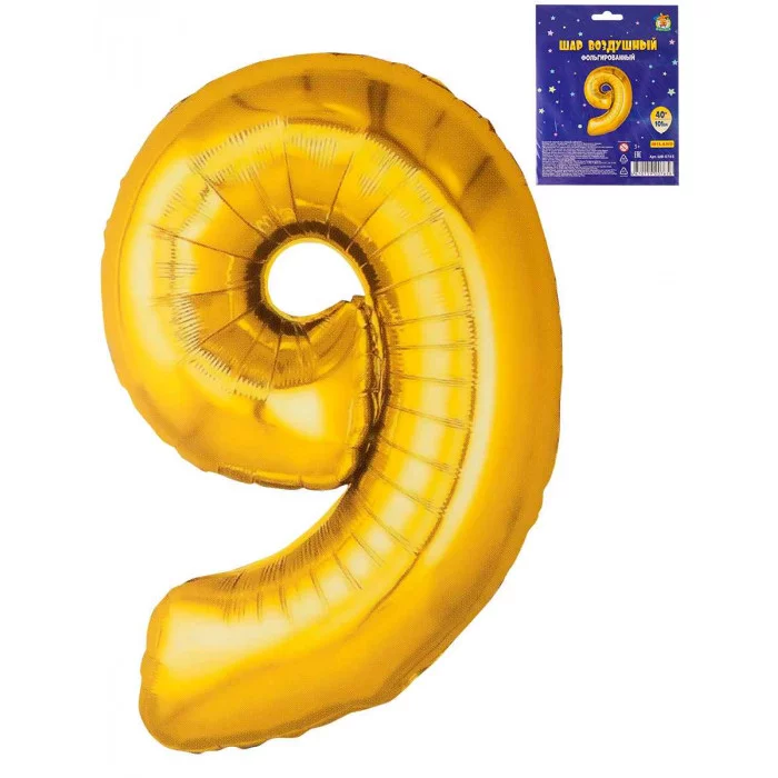 Воздушный шар Цифра "9", золотистый, фольга, 40\'/101 см ШВ-0765