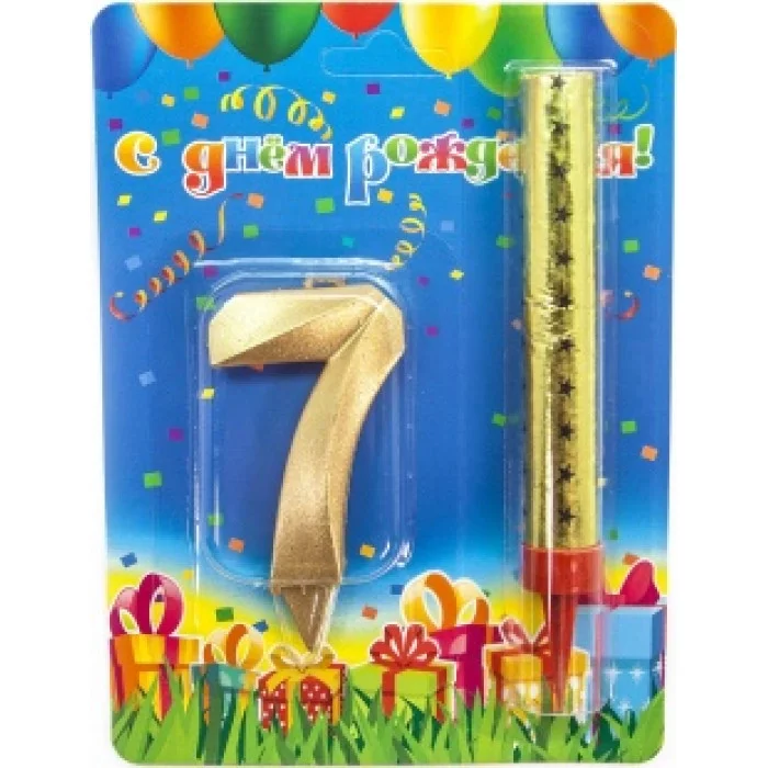 Набор, Фонтан и Свеча Цифра, 7 Грани, Золото, 10 см, 1 шт. 1777