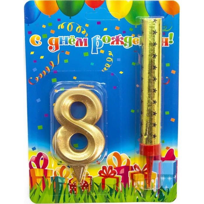 Набор, Фонтан и Свеча Цифра, 8 Грани, Золото, 10 см, 1 шт. 1778