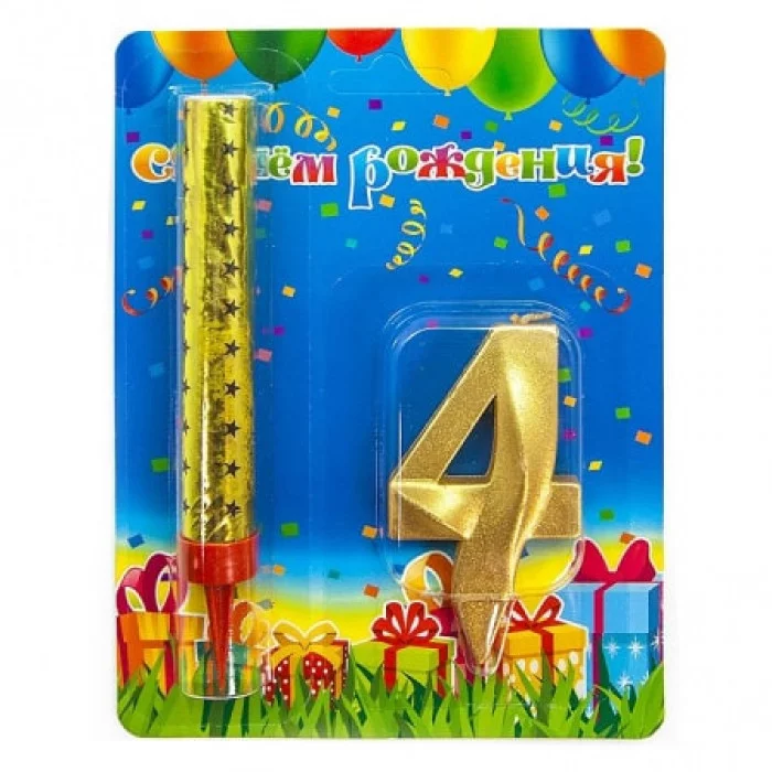 Набор Свеча-Фонтан и Свеча Цифра 4 Грани Золото 10 см 1 шт. 1774