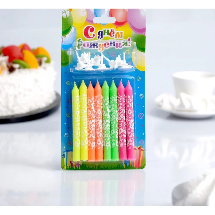 Набор свечей для торта "С Днём Рождения" с цветочками, классические, 8 штук 4075416