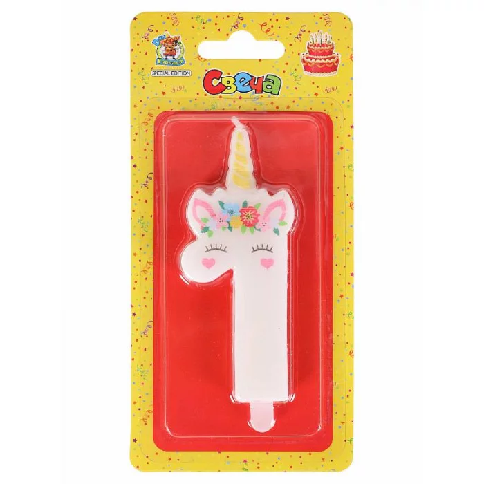 Свеча для торта Единорог с цветочным венком., цифра 1 С-9560