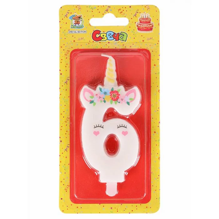 Свеча для торта Единорог с цветочным венком., цифра 6 С-9565