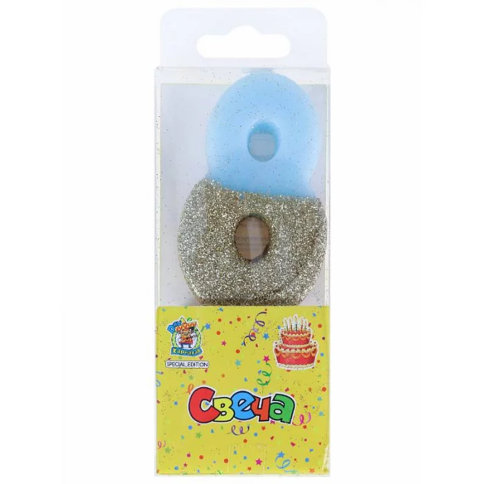 Свеча для торта голубая цифра 8 с блестящим глиттером С-9577