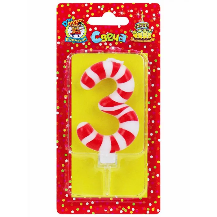 Свеча для торта Конфетка Цифра 3 С-8277