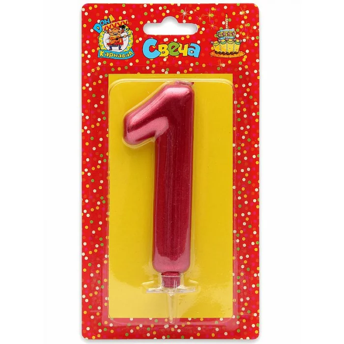 Свеча для торта Красный металлик (большая) Цифра 1 С-1853