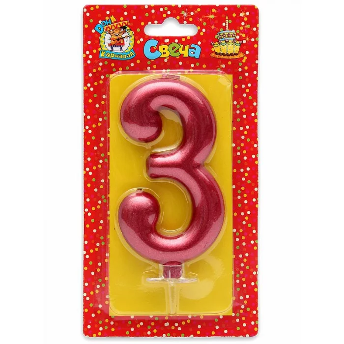 Свеча для торта Красный металлик (большая) Цифра 3 С-1855